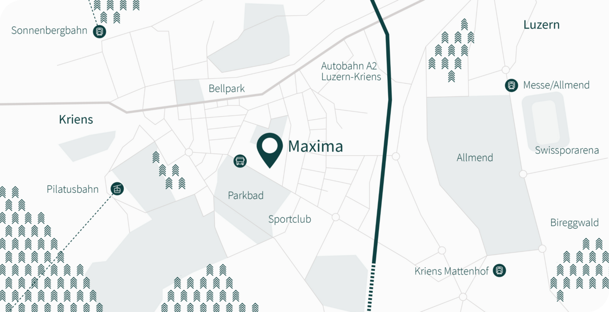 Anschlüsse an den öffentlichen Verkehr und das Strassennetz, Einkaufsmöglichkeiten und Freizeitangebote, die Stadt und grüne Wiesen, den Hausberg und das Dorf. Maxima schätzt das, die Nähe und den Platz zum Atmen. Maxima vertraut auf Bekanntes und Bewährtes. Und Maxima bleibt gerne da, wo das Zuhause ist. In Kriens, im Ruhigen, das Grüne zum Greifen nah.